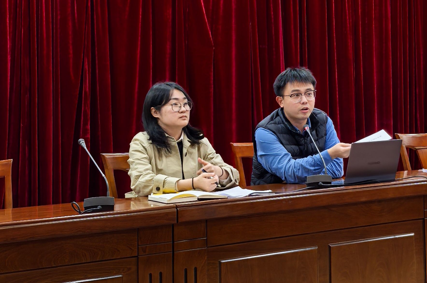 陈智慧聚焦考研冲刺与就业策略,鼓励同学们在备考关键期保持积极良好的心态,科学安排时间,努力实现个人理想目标。她还介绍了近期校园招聘安排,并提醒同学们增强防范意识,警惕就业陷阱,确保招聘信息的真实性,切实保障个人权益。征文维围绕简历制作、三方协议签订、招聘信息筛选展开实用指导。他鼓励大家理性对待升学与就业问题,结合个人兴趣与长远规划做出明智选择。郭晓进一步解释了毕业生调剂政策以及毕业季注意事项。她建议备考同学坚持到底,稳住心态,同时也要做好多手准备,密切关注调剂政策变化。